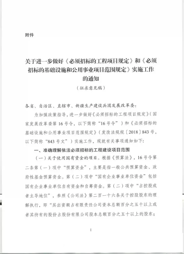 近日,國(guó)家發(fā)改委發(fā)布《關(guān)于進(jìn)一步做好<必須招標(biāo)的工程項(xiàng)目規(guī)定>和<必須招標(biāo)的基礎(chǔ)設(shè)施和公用事業(yè)項(xiàng)目規(guī)定>實(shí)施工作的通知》(征求意見稿)?!锻ㄖ返闹饕獌?nèi)容圍繞“準(zhǔn)確理解依法必須招標(biāo)的工程建設(shè)項(xiàng)目范圍”、“規(guī)范限額以下工程建設(shè)項(xiàng)目的采購(gòu)”和“嚴(yán)格執(zhí)行依法必須招標(biāo)制度”展開,其中對(duì)于16號(hào)令、843號(hào)令中的相關(guān)規(guī)定和名詞進(jìn)行了進(jìn)一步的解釋。