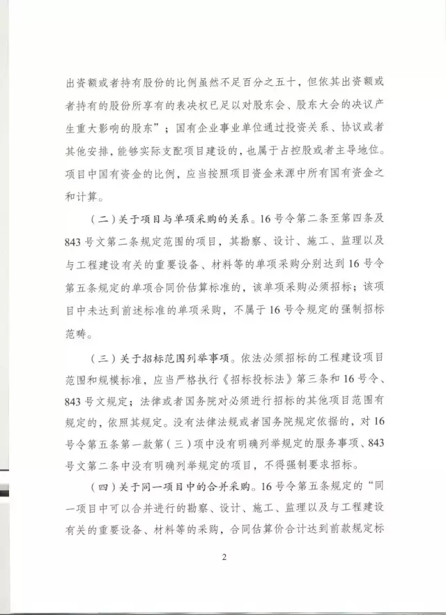 沒有法律法規(guī)或國(guó)務(wù)院規(guī)定依據(jù)的,對(duì)于16號(hào)令中未明確列舉的服務(wù)事項(xiàng)、843號(hào)文中未明確列舉規(guī)定的項(xiàng)目,不得強(qiáng)制要求招標(biāo)。