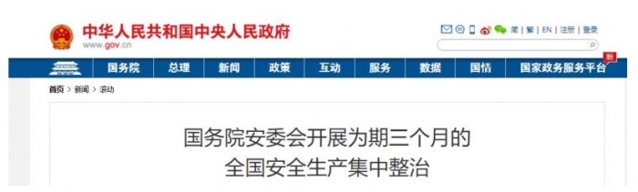 國務(wù)院安委會11月22日召開全國安全生產(chǎn)電視電話會議。中共中央政治局常委、國務(wù)院總理李克強(qiáng)作出重要批示。次日,印發(fā)《全國安全生產(chǎn)集中整治工作方案》,在全國范圍內(nèi)對危險(xiǎn)化學(xué)品等重點(diǎn)行業(yè)領(lǐng)域開展為期三個(gè)月的安全生產(chǎn)集中整治。其中,建筑施工重點(diǎn)整治無資格承攬工程及違法分包、轉(zhuǎn)包、盲目趕工期、搶進(jìn)度。