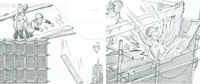 (一)“三寶”防護 安全帽、安全帶、安全網(wǎng)是安全“三寶”。作業(yè)現(xiàn)場人員應做到:一是進入作業(yè)現(xiàn)場的職工要戴安全帽;二是高空作業(yè)人員須系安全帶;三是高處作業(yè)點的下方必須設安全網(wǎng)。