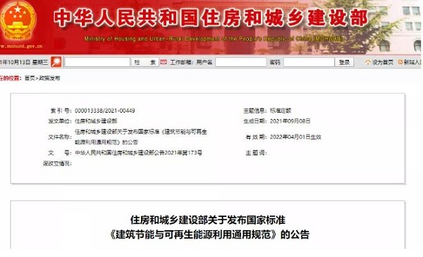 近日,住房和城鄉(xiāng)建設(shè)部發(fā)布國家標(biāo)準(zhǔn)《建筑節(jié)能與可再生能源利用通用規(guī)范》的公告。