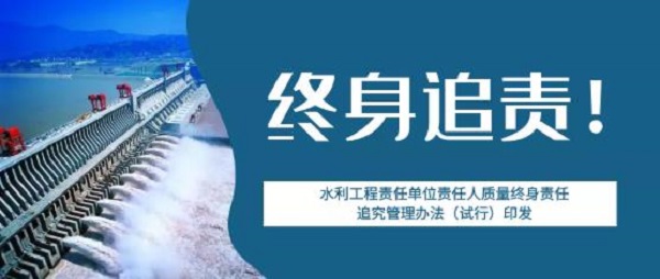 為加強(qiáng)水利工程質(zhì)量管理,強(qiáng)化質(zhì)量終身責(zé)任,提高質(zhì)量責(zé)任意識(shí),保證水利工程建設(shè)質(zhì)量,水利部組織編制了《水利工程責(zé)任單位責(zé)任人質(zhì)量終身責(zé)任追究管理辦法(試行)》(以下簡(jiǎn)稱(chēng)《辦法》),強(qiáng)調(diào)水利工程質(zhì)量終身責(zé)任管理實(shí)行書(shū)面承諾和竣工后永久性標(biāo)識(shí)等制度。