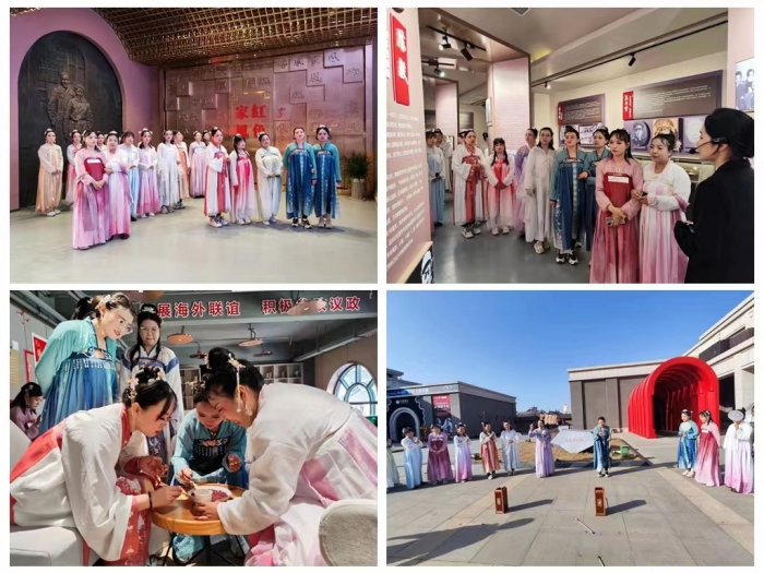 漢服體驗活動中,大家身穿各自挑選的服飾,聆聽老師深入淺出地為大家普及漢服常識,同時參觀了延安紅色家風館。