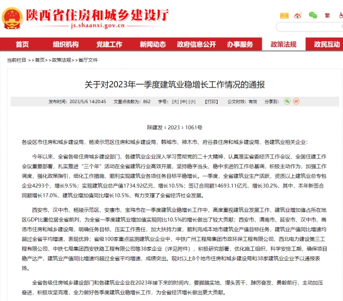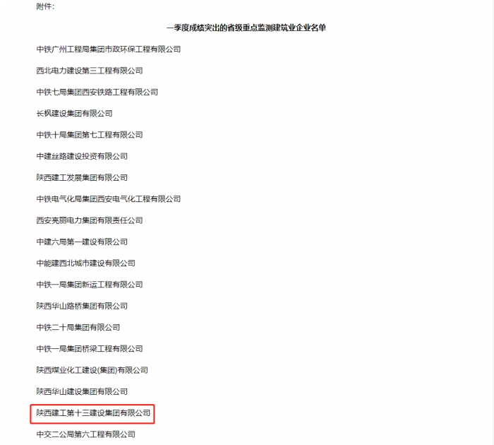 陜建十三建集團(tuán)獲評(píng)2023年一季度建筑業(yè)穩(wěn)增長(zhǎng)成績(jī)突出企業(yè)