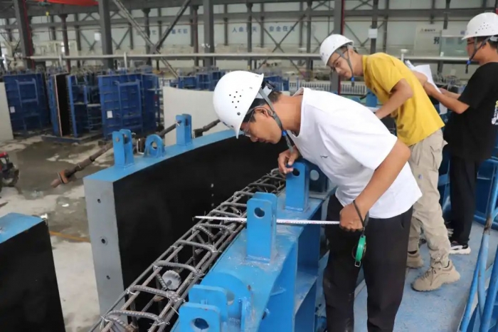 承接任務后,為確保管片順利澆筑,集團新型建材公司統(tǒng)籌部署,科學組織,嚴格按照設計圖紙、技術生產規(guī)范要求,對現場管理人員、勞務隊伍進行了詳細的技術交底,明確了操作規(guī)程;嚴格把控原材進場關,優(yōu)化混凝土配合比,保證管片成品質量符合設計要求;加強協調管控,嚴格按照施工操作要求完成了模具安裝、鋼筋綁扎、塌落度檢測、混凝土振搗等工作。